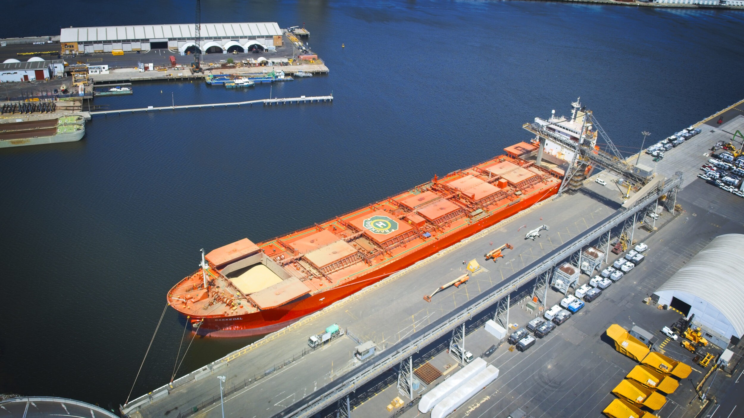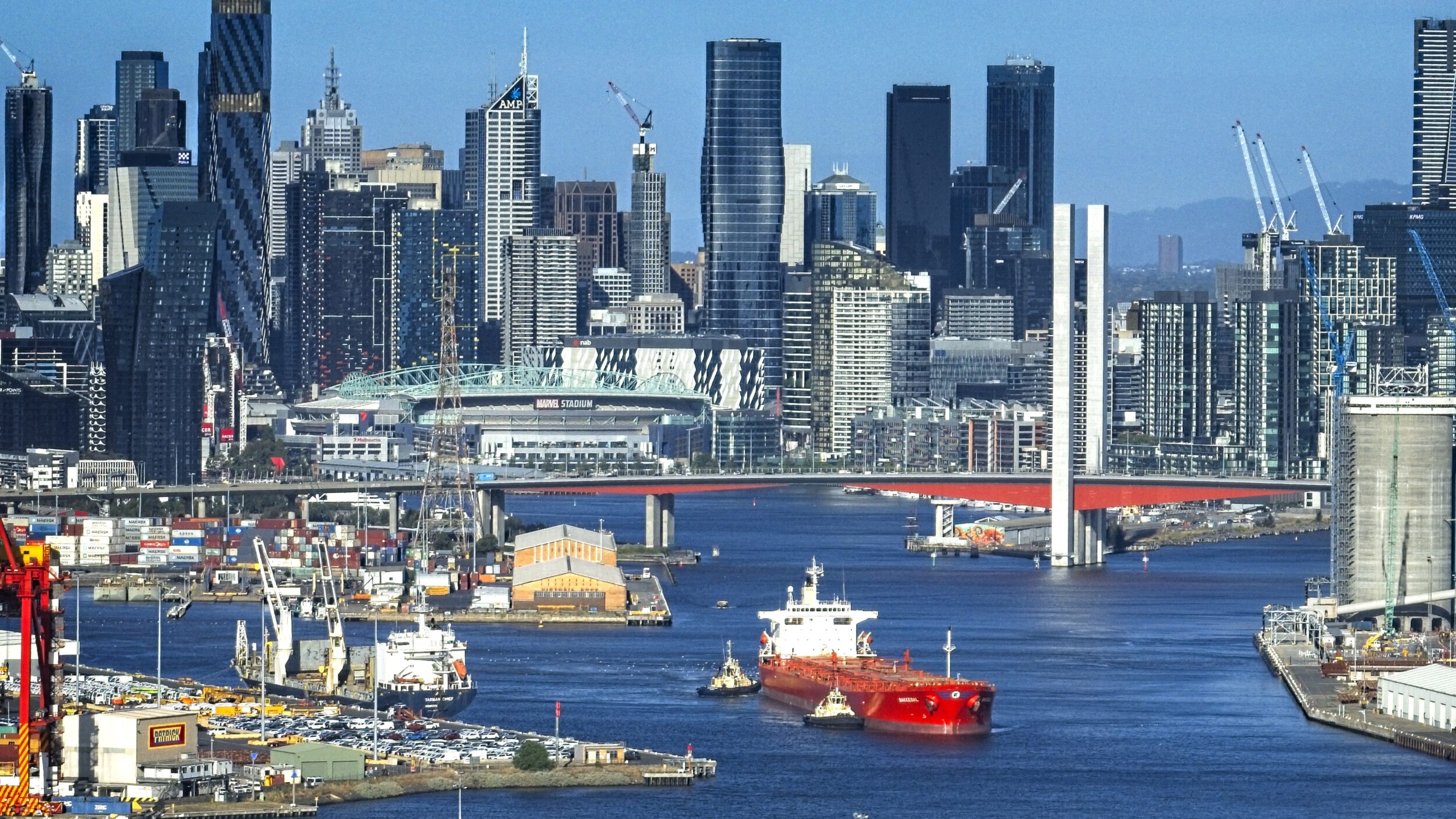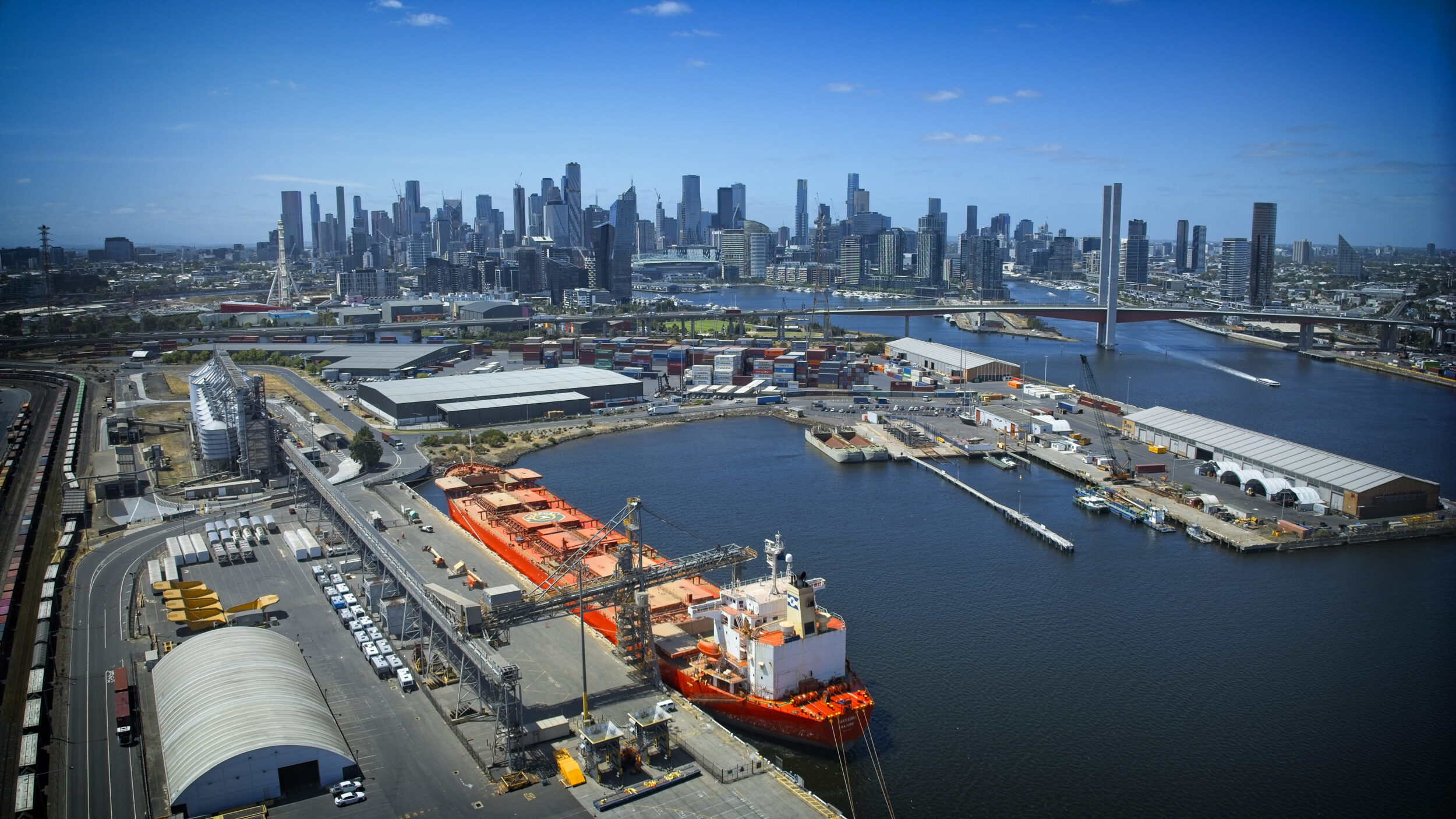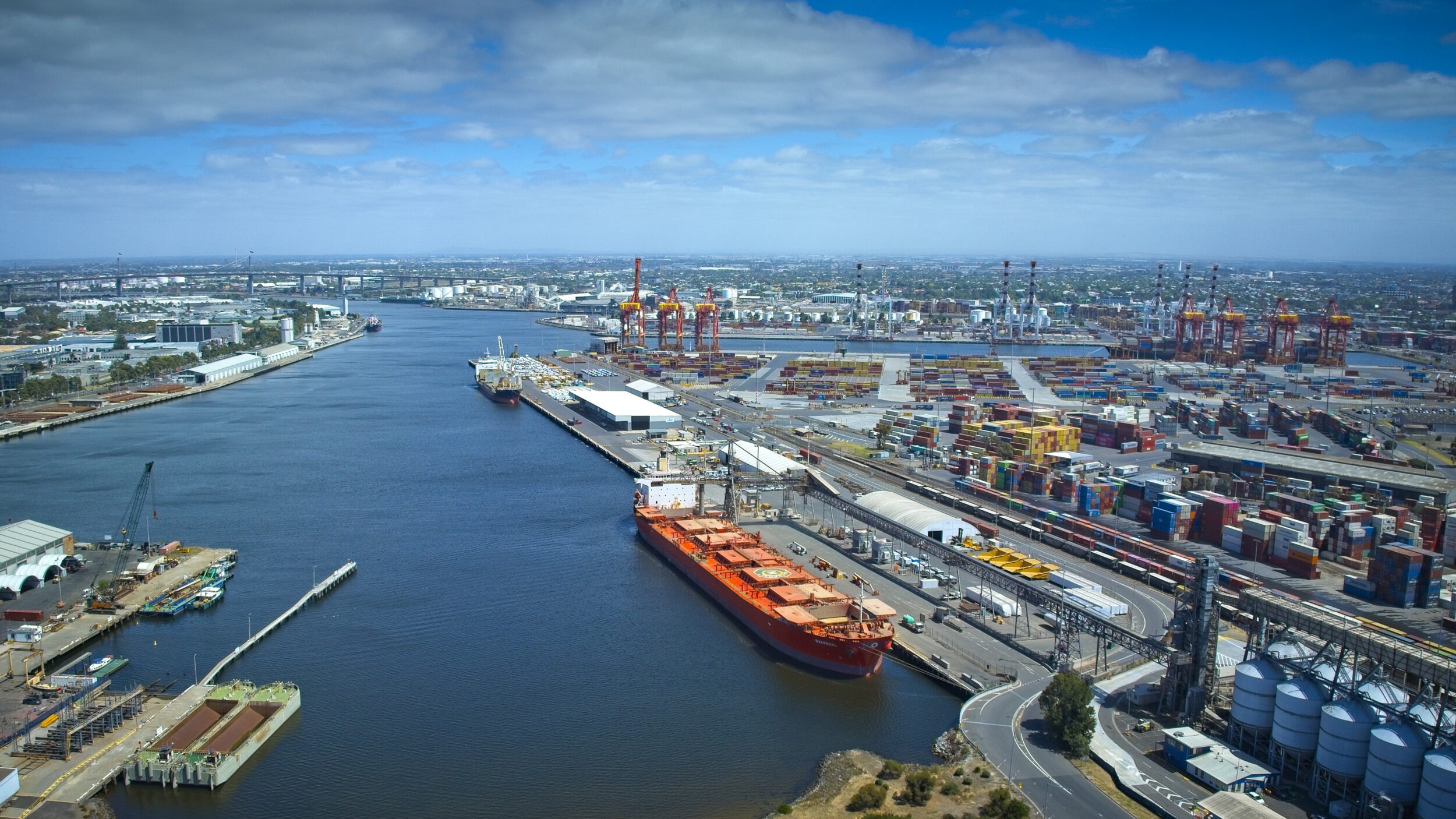 This ship was freshly painted and is departing the port of Melbourne fully loaded. Capturing this ship by drone is the most economical way. The DJI Mavic 3 drone, is small enough to be inconspicuous and maintain a safe distance from the ship whilst capturing high resolution images.