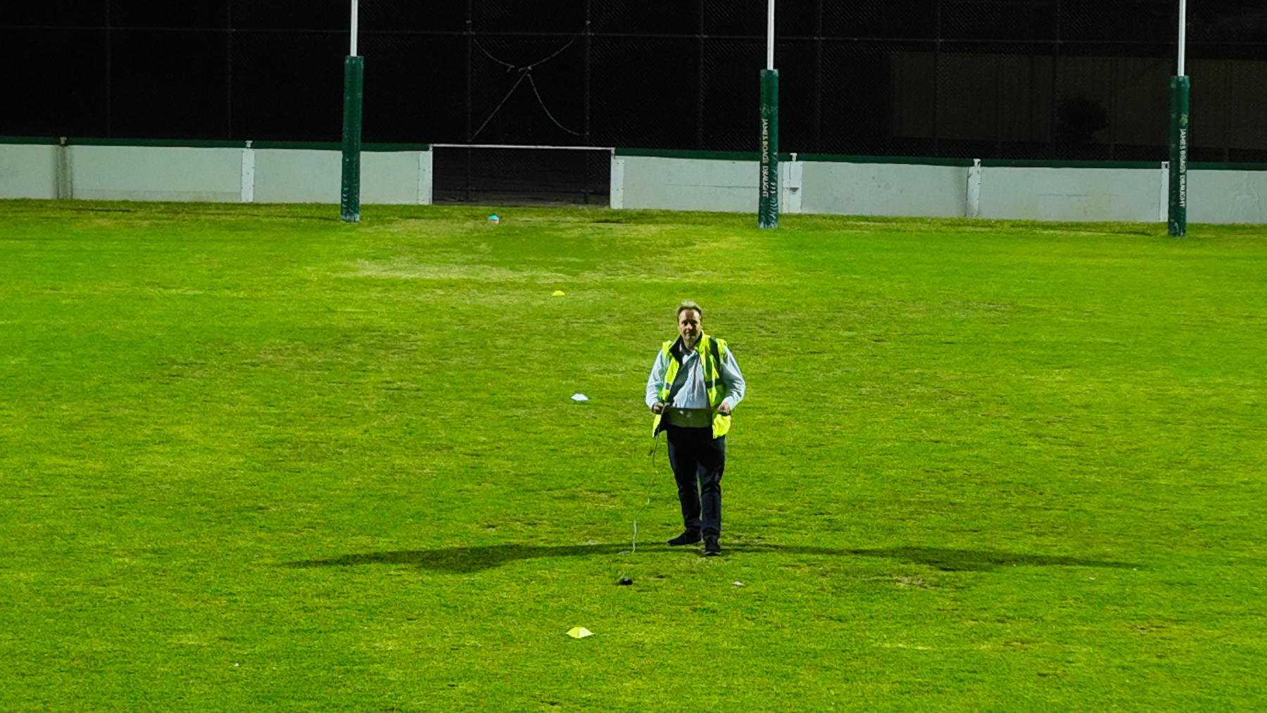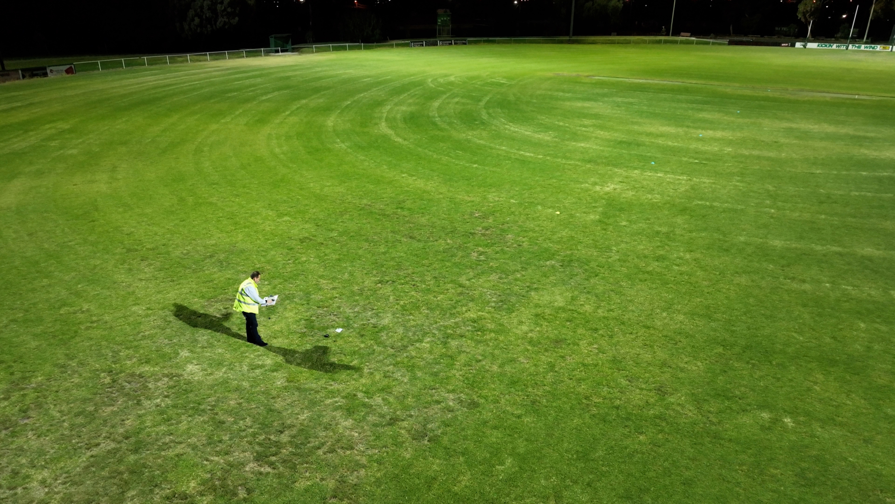 This video showcases a lighting audit at a football oval as well as a lighting survey. The object is to ensure that the lighting is evenly spread over the whole oval as well as eliminating any light spill onto the neighboring residential properties.