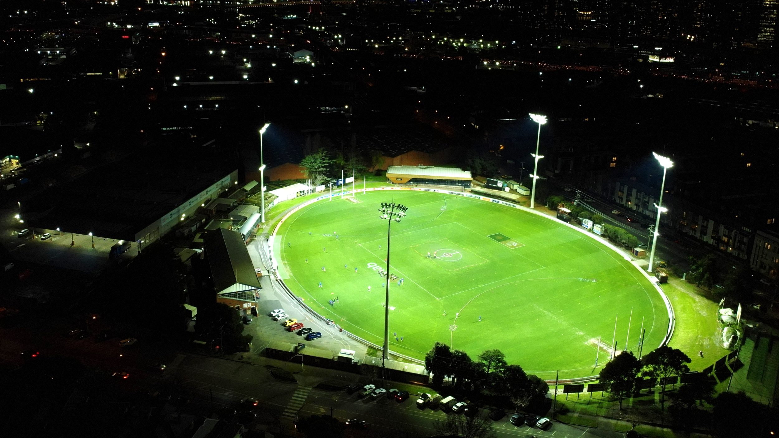 We were able to fly the drone around the whole oval at night to get very clear pictures.